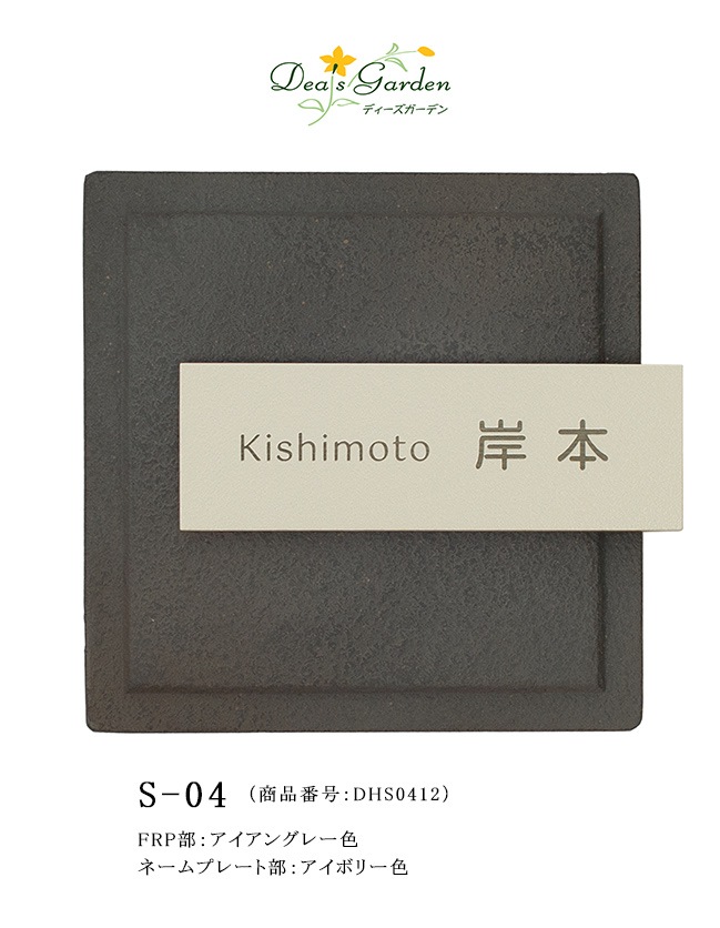 商品名:S-04表札 (商品番号:DHS0412)ステンコレクションS-04表札、FRP部:アイアングレー色、ネームプレート部:ア...