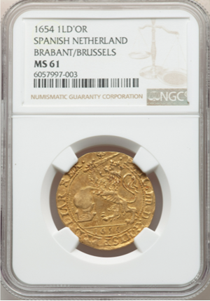 スペイン フェリペ4世 ゴールドソブリンライオンドール 1SD\'Or 1654 MS61 NGC