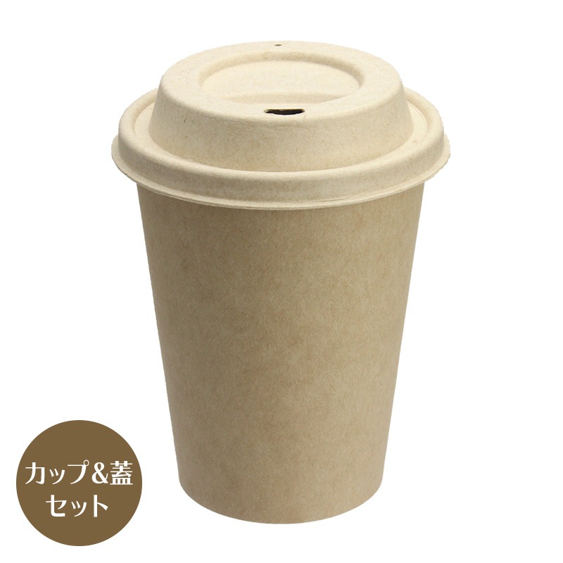 紙コップ蓋付 未晒紙コップ KMA-360 エコ紙蓋 90パルプモールドリッド ナチュラル 100個セット