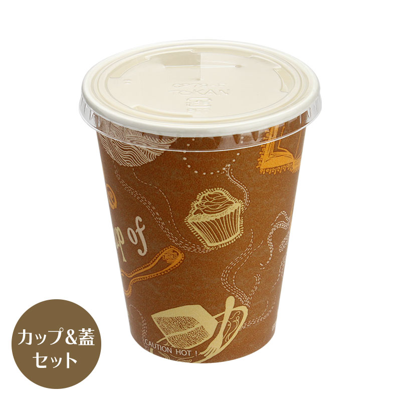 紙コップ蓋付 厚紙カップ 8オンス アリス SMT-280 X穴透明フタ トーカン 100個セット