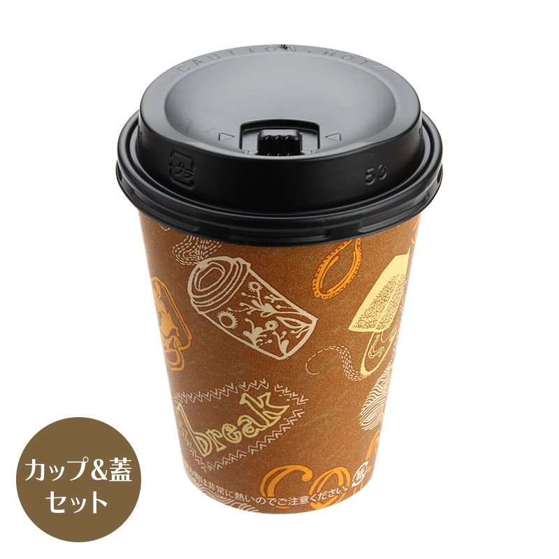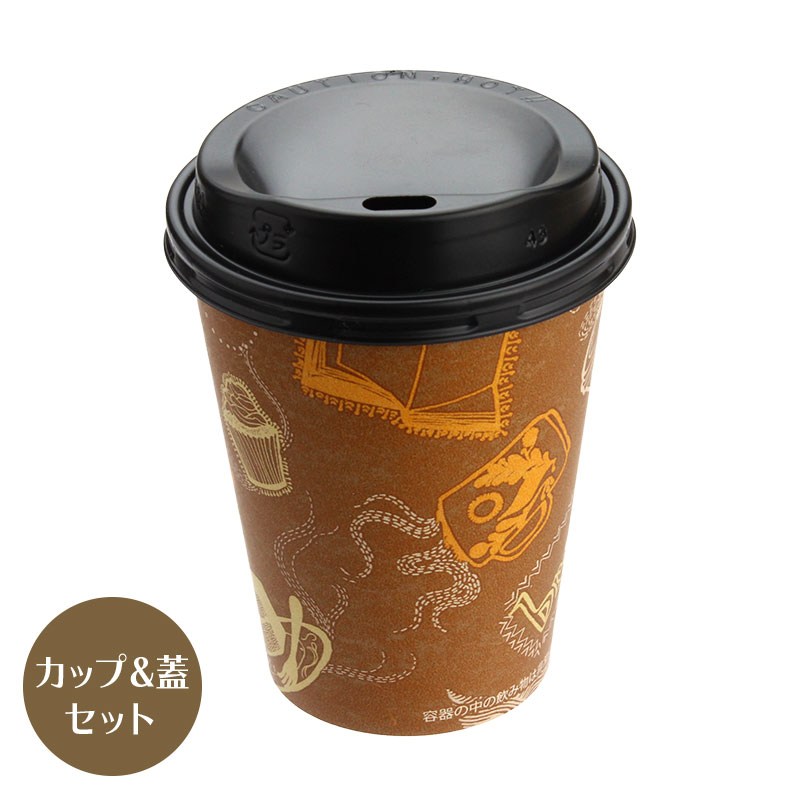 紙コップ蓋付 厚紙カップ 8オンス SMT-280 リフトアップリッド 黒 100個セット