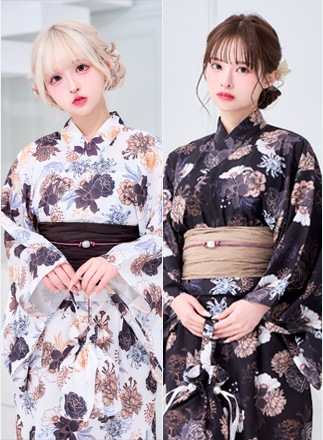 【2~3営業日で発送】エレガンスモダン花模様2way浴衣《浴衣4点セット》【Malymoon/マリームーン】【YK2510312】