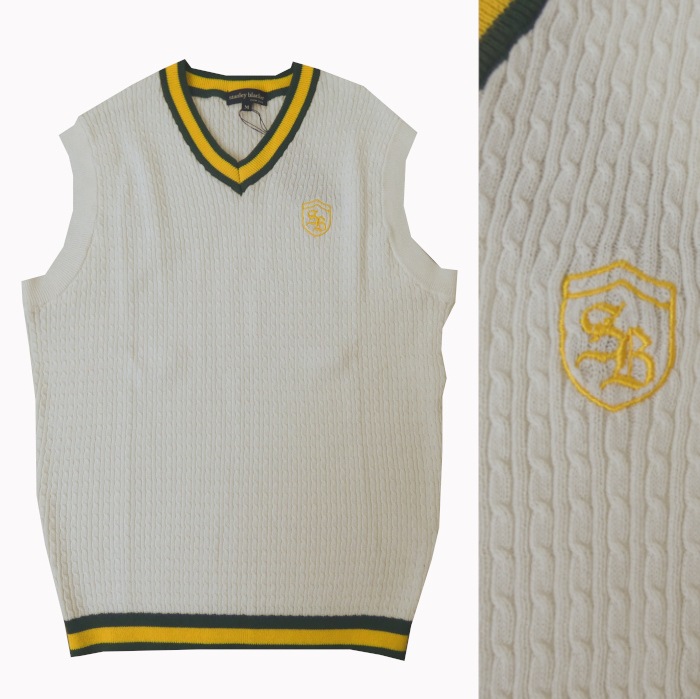スタンリーブラッカー(stanley blacker) メンズ 春夏秋 ニット ベスト ケーブル編み オフホワイト 0005 M...
