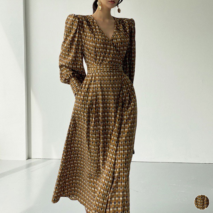 ロング丈 カシュクール Vネック ラップワンピース