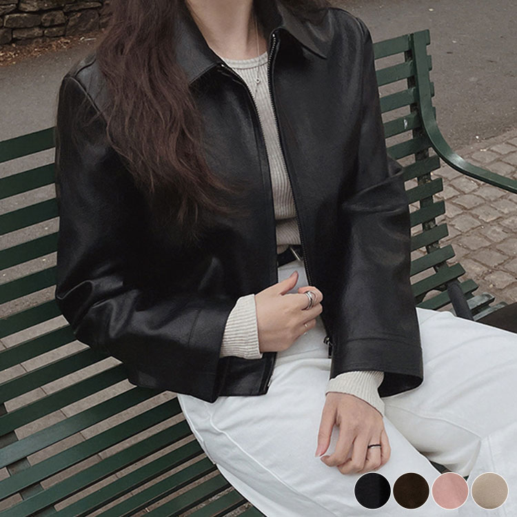 ショート丈 ダブルファスナー フェイクレザー ジャケット
