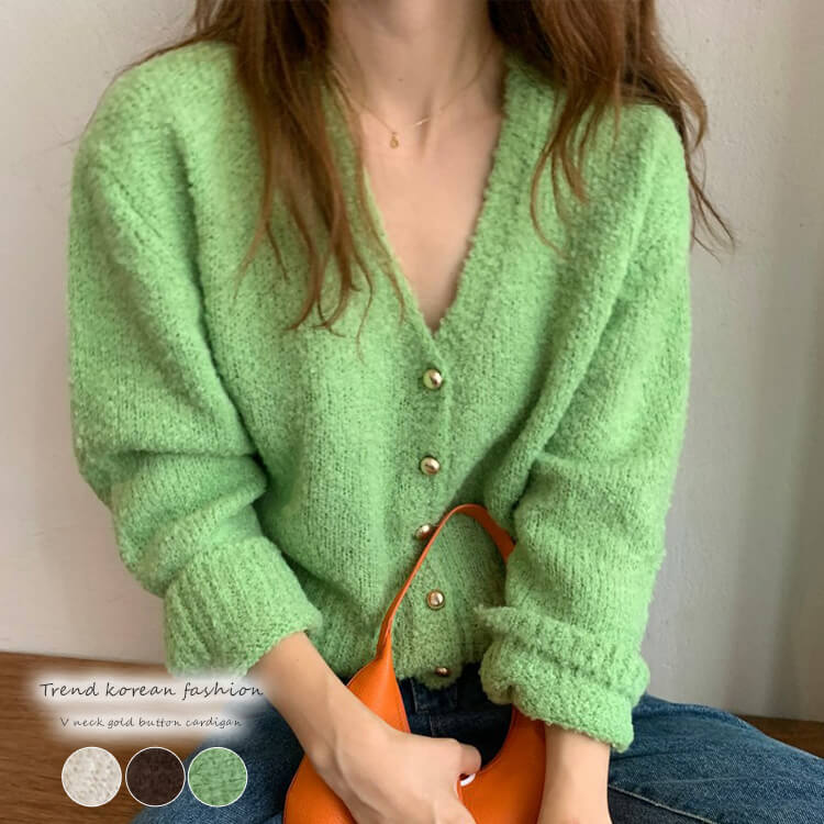 もこもこ Vネック 金ボタン ニットカーディガン