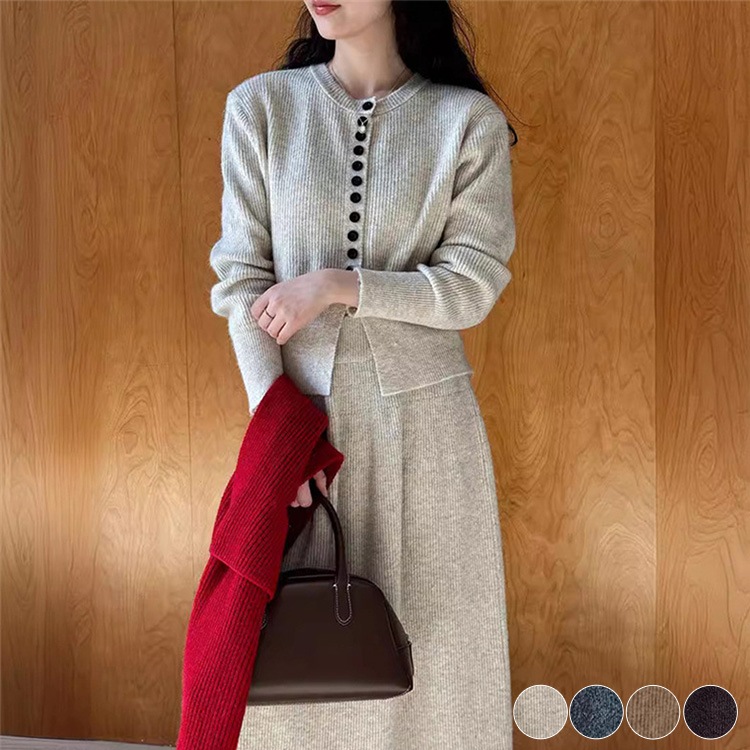 長袖 ニットカーディガン ロングスカート ニットアップ