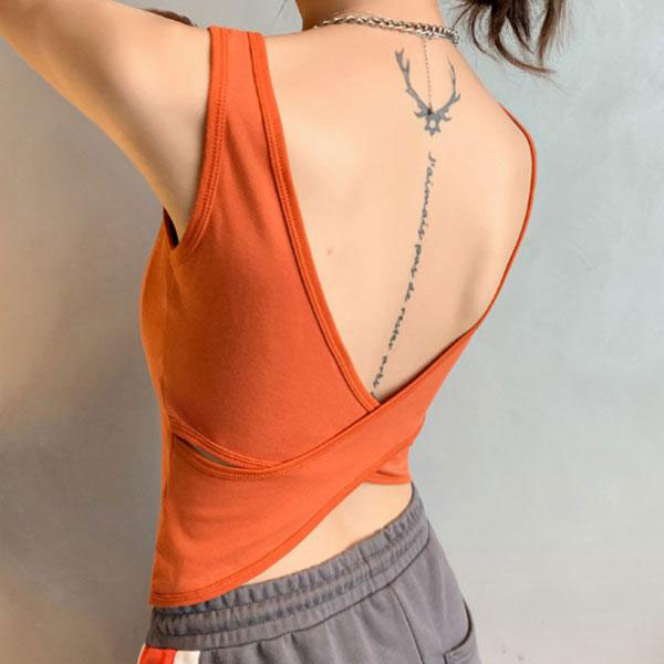 【セール】即納 安い レディース バッククロス タンクトップ パッド入り インナー トップス ブラトップ 通気性 伸縮性 ヨガ フ...