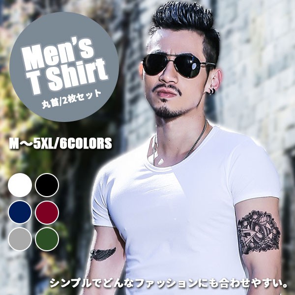 【セール】即納 安い Tシャツ 半袖 メンズ 2枚 セット クルーネック 無地 透けない 通気性 吸汗性 厚手 丈夫 シンプル イ...
