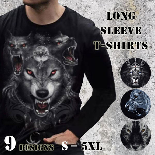 【セール】即納 安い メンズ トップス Tシャツ 長袖 ロングTシャツ アニマル ファッション プリント 動物柄 インパクト大 大...