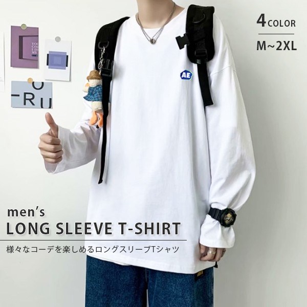 【セール】即納 安い メンズ トップス Tシャツ 長袖 ロングTシャツ ロングスリーブ ワンポイント ロゴ アクセント 無地 シン...
