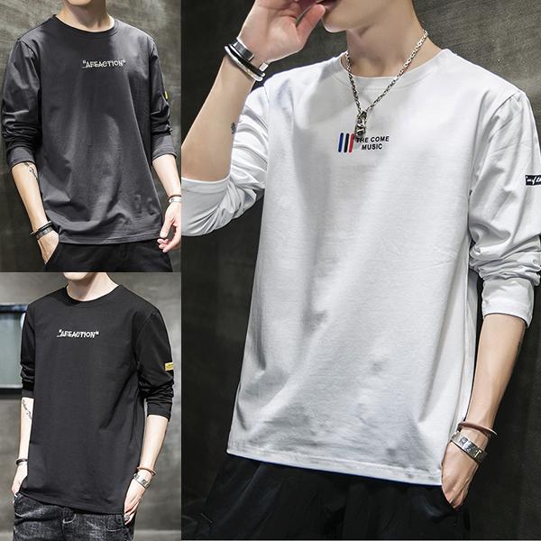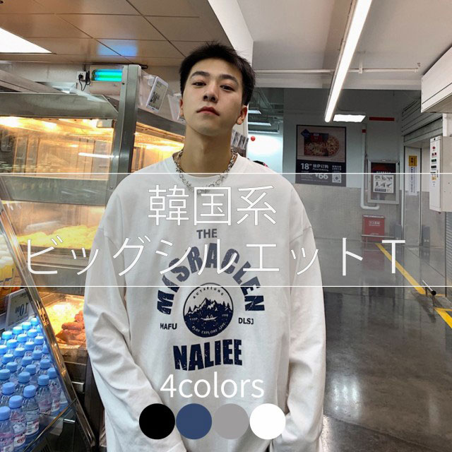 【セール】即納 安い メンズ トップス Tシャツ 長袖 ロングTシャツ ビッグシルエット プリント 韓国系 春 秋 シンプル ラフ...