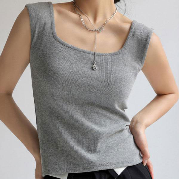 【セール】即納 安い レディース リブ編み タンクトップ Vネック スクエアネック ノースリーブ インナー トップス 脇高 ストレ...