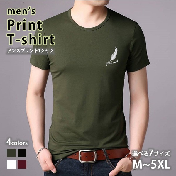 【即納】メンズ トップス Tシャツ 半袖 クルーネック ロンT 英字 プリント シンプル カットソー カジュアル 着回し 伸縮性 ...