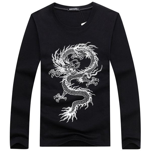 【セール】即納 安い メンズ ドラゴン プリント ロングTシャツ カットソー ロンT 長袖 トップス クルーネック 龍 柄 和柄 ...