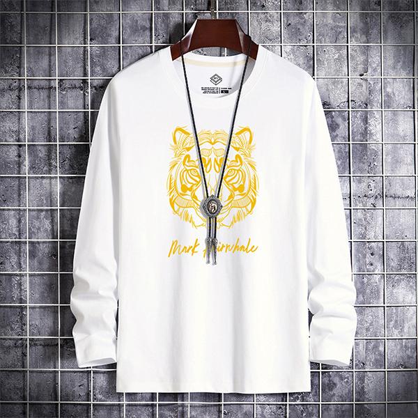 【セール】即納 安い メンズ タイガー プリント Tシャツ カットソー 長袖 トップス ロングTシャツ クルーネック インナー 虎...