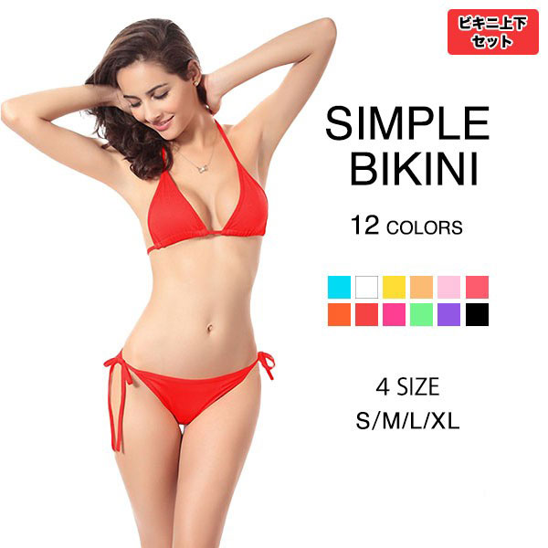 【即納】レディース スイムウェア ビキニ 上下セット 水着 2点セット 鮮やかカラー セクシー 無地 シンプル 海 川 プール ビ...