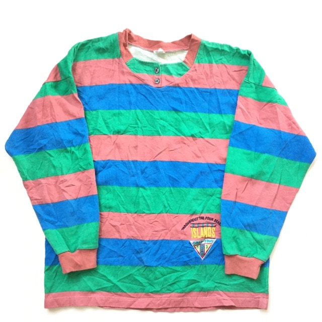 GREEK ISLANDS ロングTシャツ ロンT アメリカ直輸入 Renato 送料無料 レディース L/緑xピンクx青 ボーダ...
