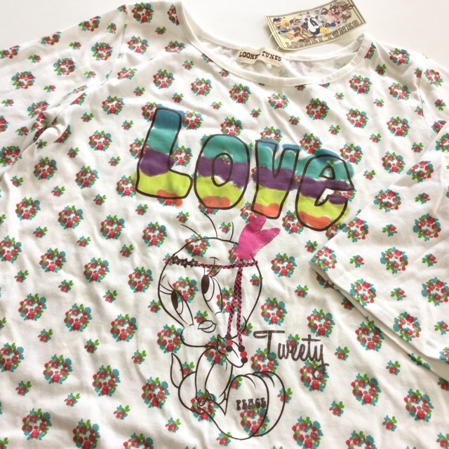 LOONEY TUNES ルーニーテューンズ トゥイーティー 七部袖Tシャツ チュニック 未使用品 送料無料 レディース L/白x...