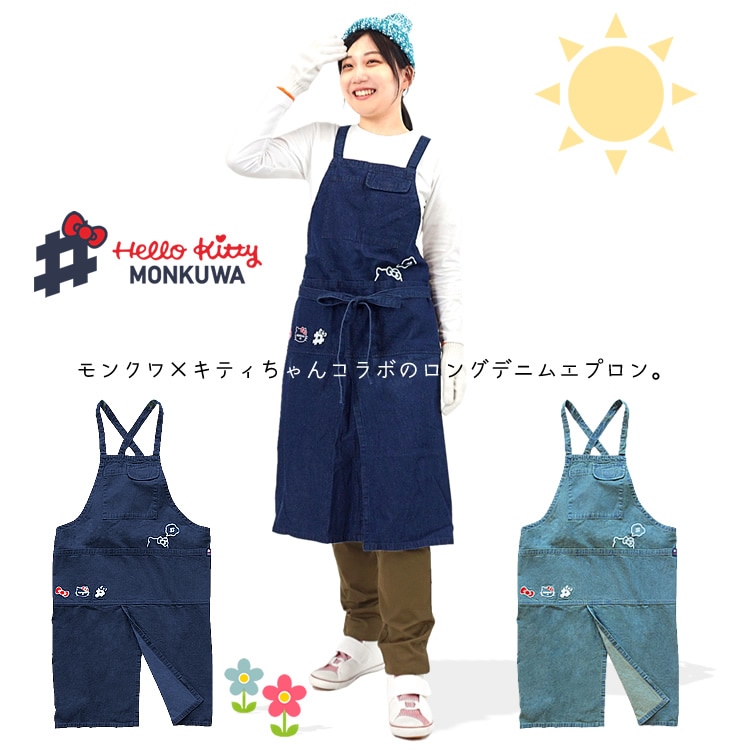 送料無料 モンクワ monkuwa ハローキティ キティちゃん エプロン ロングエプロン デニム レディース 農業女子 ガーデニン...