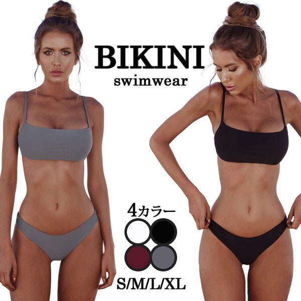 【即納】レディース 水着 ビキニ ノンワイヤー セパレート 韓国風 無地 シンプル デザイン オトナ女子 盛れる 海水浴 ビーチ ...