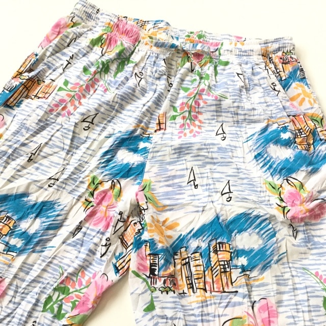 ERIKA クロップドパンツ アメリカ直輸入 イージーパンツ 送料無料 レディース L/白x多色 総柄 海 リゾート 柄パン ゴム...