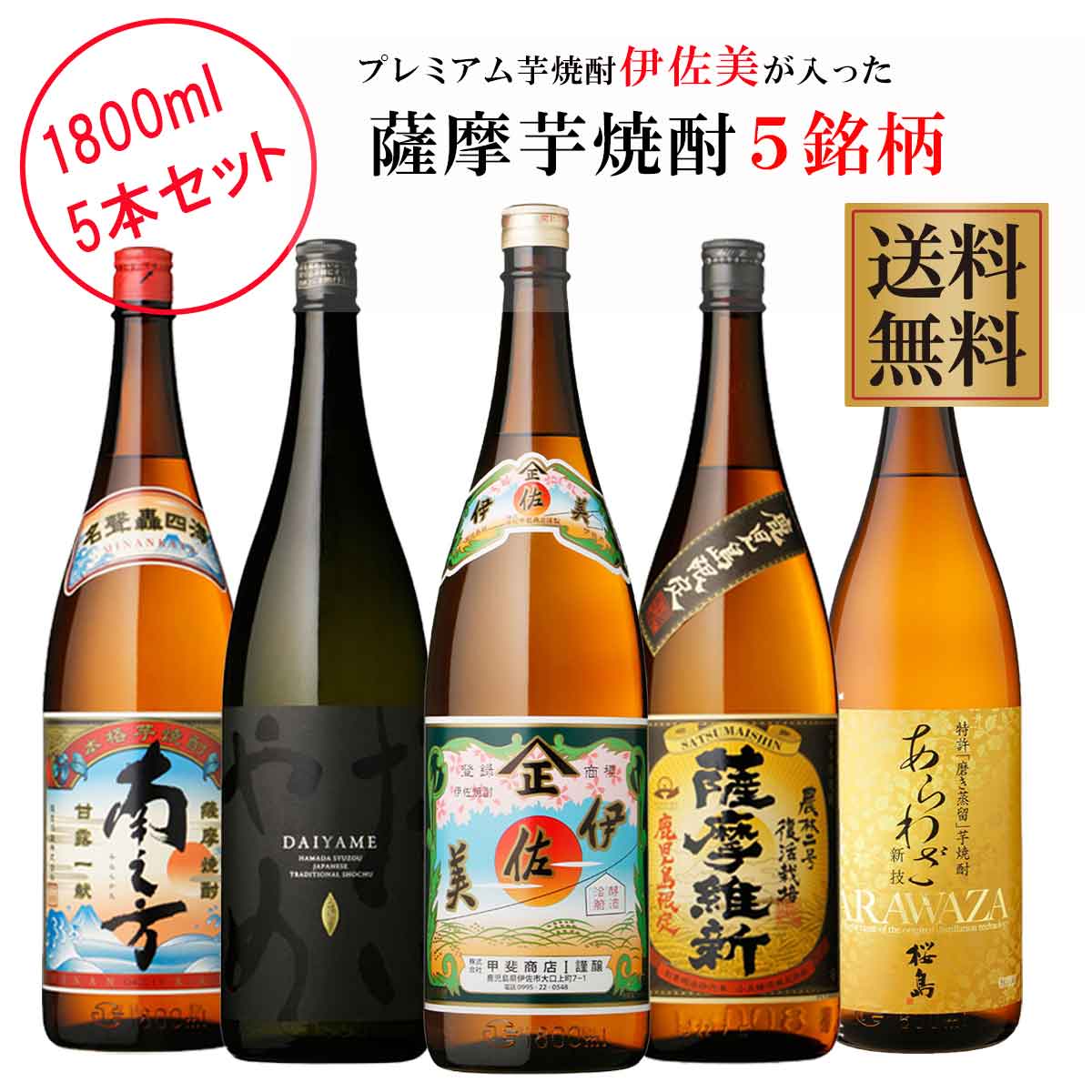 【送料無料】プレミアム焼酎伊佐美が入った薩摩芋焼酎5銘柄 1800ml×5本 芋焼酎 飲み比べセット