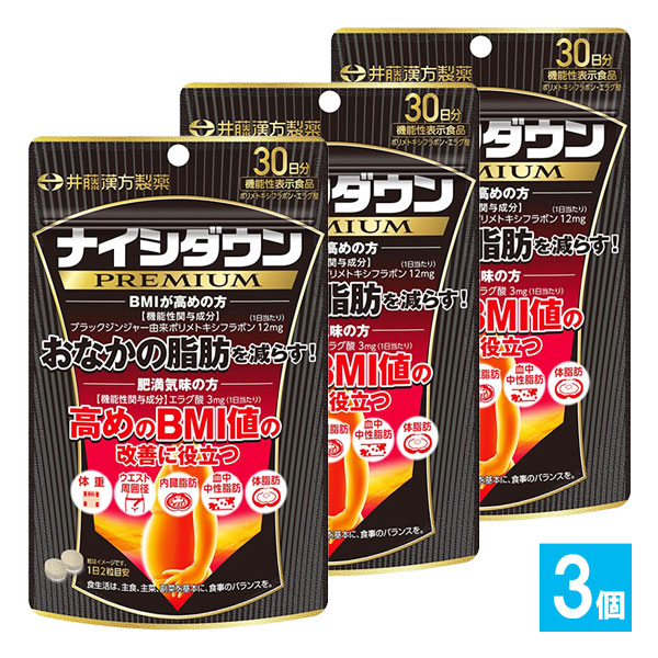 【機能性表示食品】ナイシダウンPREMIUM 60粒(30日分)×3個セット【井藤漢方製薬】お腹の脂肪を減らすブラックジンジャー由...