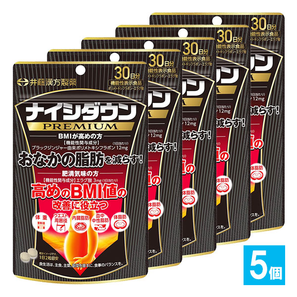 【機能性表示食品】ナイシダウンPREMIUM 60粒(30日分)×5個セット【井藤漢方製薬】お腹の脂肪を減らすブラックジンジャー由...