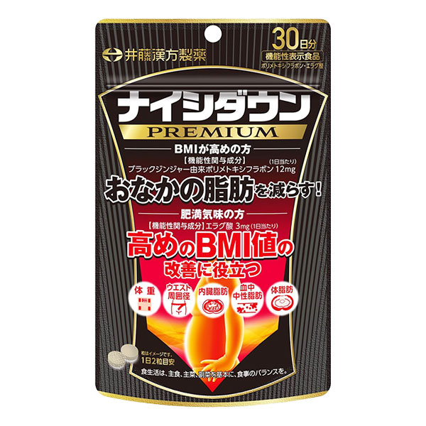 【機能性表示食品】ナイシダウンPREMIUM 60粒(30日分)【井藤漢方製薬】お腹の脂肪を減らすブラックジンジャー由来ポリメトキ...