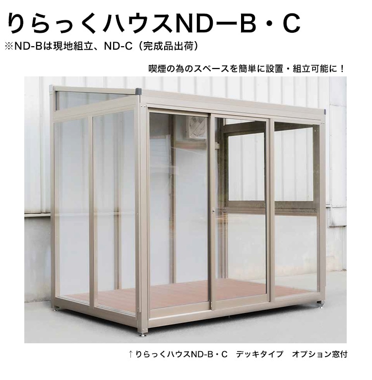 【受動喫煙防止の分煙対策】「りらっくハウスND-B(現地組立)、ND-C(完成品出荷)」屋外喫煙ハウス(標準仕様)サイズ:W264...
