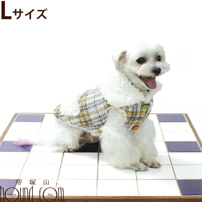 先染めチェックボアジャケット イエロー Lサイズ