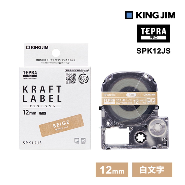 [SPK12JS] 【特価セール】 テプラPROテープカートリッジ 12mm クラフト紙ベージュ 白文字★