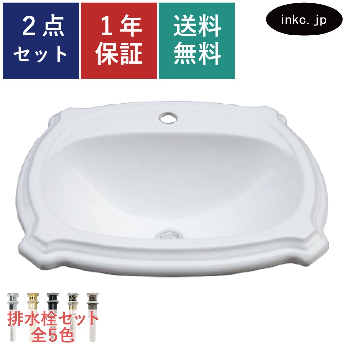 洗面ボウル おしゃれ 陶器 埋め込み オーバーフロー有り W560×D490×H230 INK-0402024H