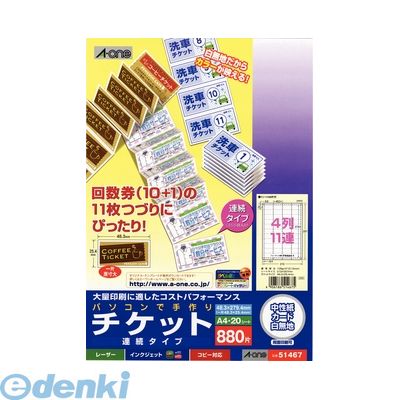 エーワン合同会社 [51467] パソコンで手作りチケット 4列11連 連続タイプ【AKB】