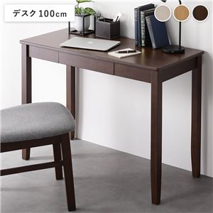 Office168天然木 デスクシリーズ デスク 単品 100cm幅 ブラウン スリム パソコンデスク 学習机 引出し付き 組立品...