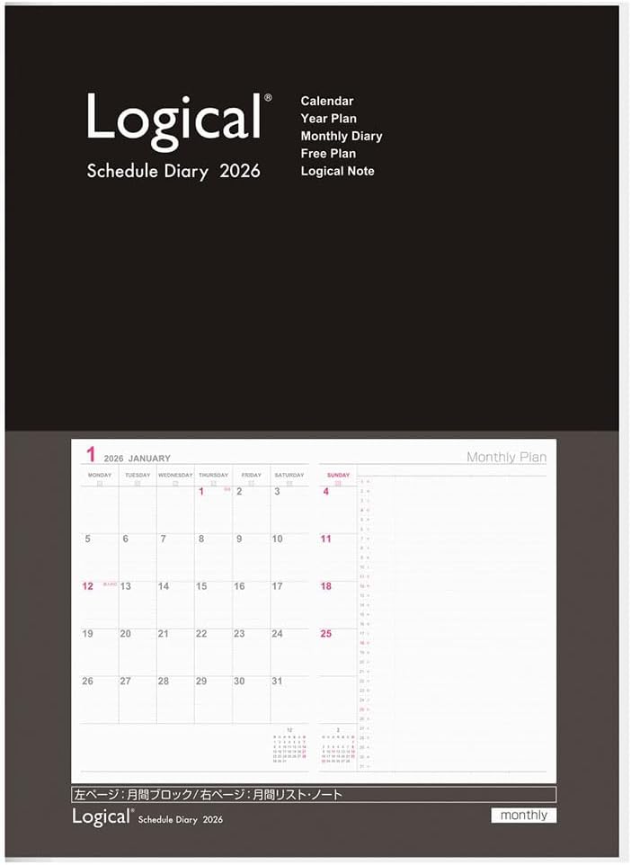 未使用品 ナカバヤシ 2026 ロジカルダイアリー 月間ブロック A6 ブラック NS-A602-26BD【送料無料】【メール便で...