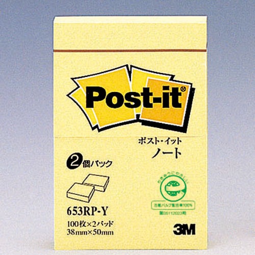 未使用品 3M ポスト・イット ノート 再生紙 スタンダードカラー 100枚×2 イエロー 653RP-Y×2個セット【送料無料】...