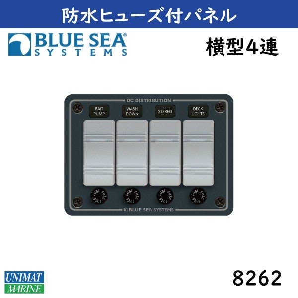 BLUE SEA ブルーシー 防水フューズ付きパネル 横型4連 / 8262