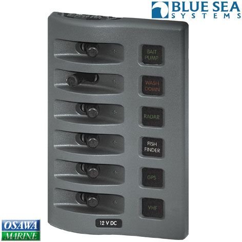 BLUE SEA ブルーシー 防水サーキットブレーカースイッチパネル 6連 / LEDライト付き 4376 グレー