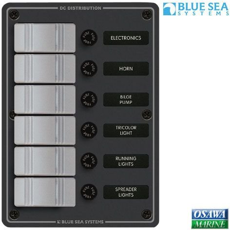 BLUE SEA ブルーシー 防水サーキットブレーカーパネル 縦型6連 / 8273