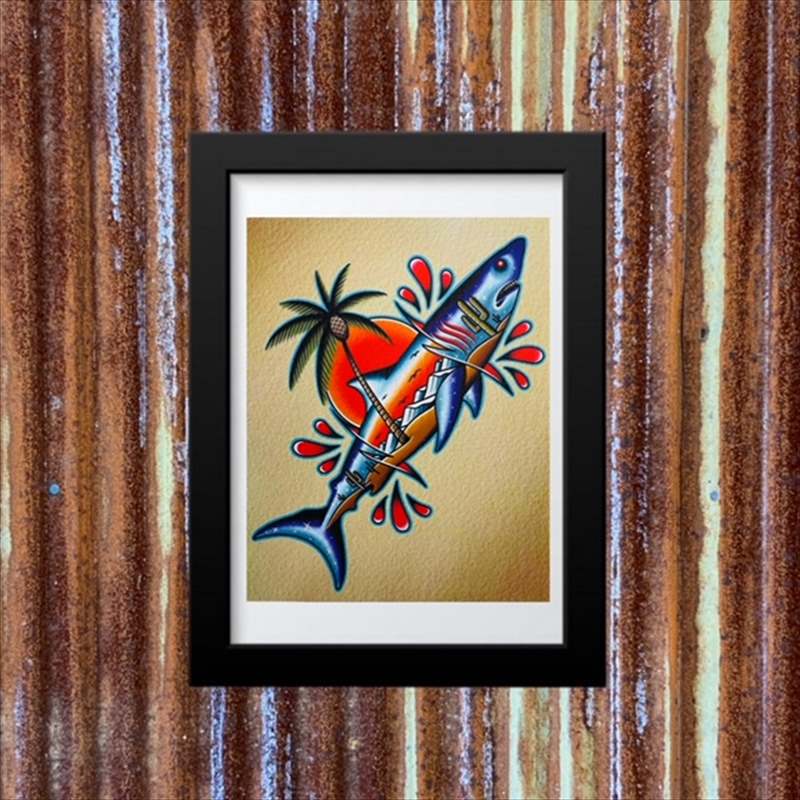 アメリカンタトゥー ポスター キャンバス シャーク 刺青 ハワイ PT52