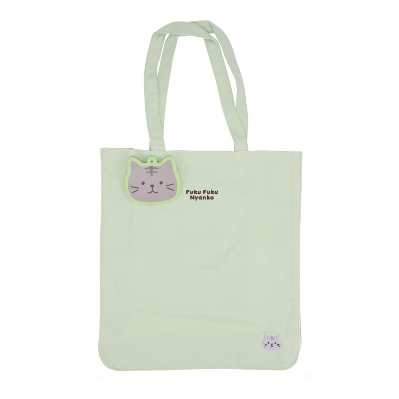 Fuku Fuku Nyanko カラフルトート グリーン 猫柄 ネコ柄 大容量 猫グッズ マチ付き かわいい プレゼント 雑貨