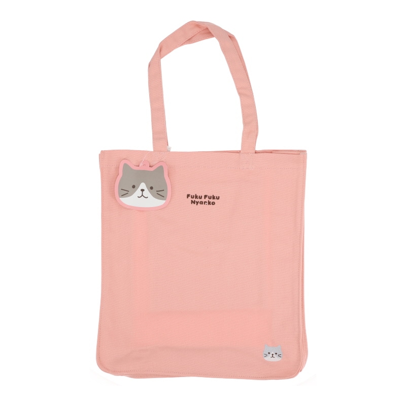 Fuku Fuku Nyanko カラフルトート ピンク 猫柄 ネコ柄 大容量 猫グッズ マチ付き かわいい プレゼント 雑貨