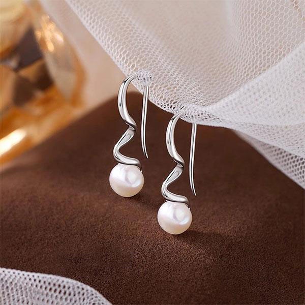 レディース スパイラル 1粒 パールピアス フックピアス シルバー999 アクセサリー ギフト プレゼント カジュアル エレガント...