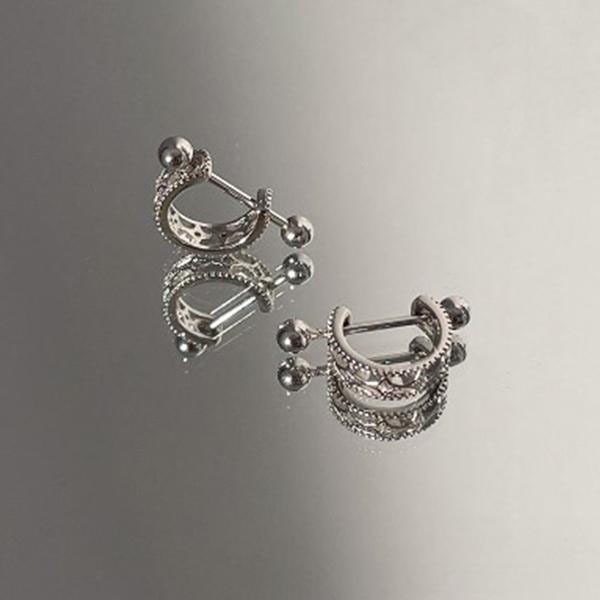 レディース イヤーカフ型 軟骨ピアス シールドバーベル シルバー999 ボディピアス アクセサリー 金属アレルギー対応 ギフト プ...
