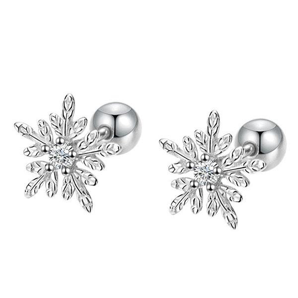 レディース 雪の結晶 シルバーピアス ジルコン スタッド ピアス ボールキャッチ アクセサリー シルバー999 ギフト プレゼント...