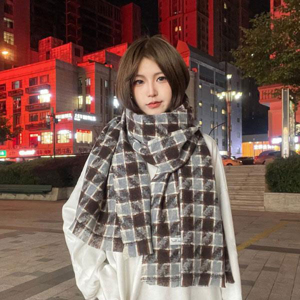 レディース 千鳥格子柄 大判ストール マフラー ネックウォーマー ショール ブランケット 柔らかい ふんわり 防寒 暖かい 可愛い...