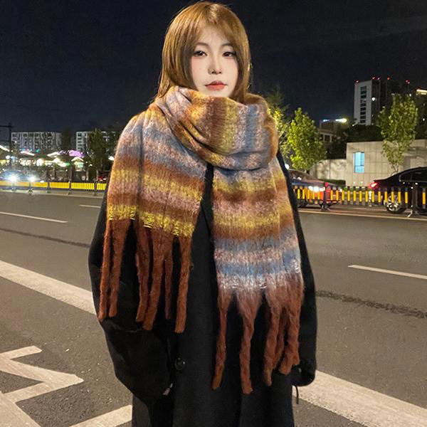 レディース ボーダー柄 マフラー ショール 大判ストール スカーフ ブランケット フリンジ 厚手 膝掛け 柔らかい 防寒 暖かい ...