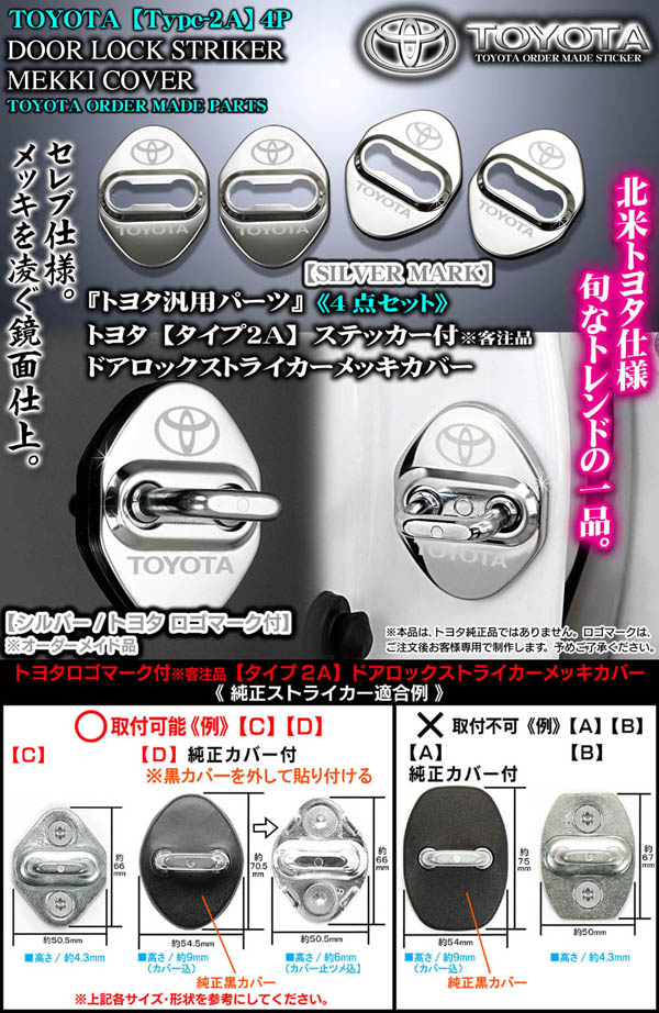 【タイプ2A】《トヨタ》シルバーロゴマーク付(客注品)ドアロック ストライカー カバー4点セット[シルバーメッキ/鏡面研磨仕上]ブ...